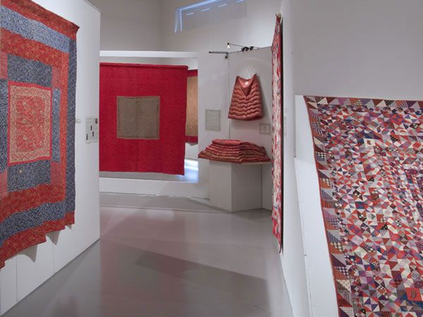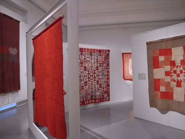 Our second exhibition, showing more quilts from the Jen Jones Collection in a stunning display designed by Gwenllian Ashley, demonstrated further aspects within the wide and wondrous spectrum of Welsh quilting. We focused on “Paisley” and “Turkey Red”. Included were the rich textured paisley shawl quilts, paisley panel quilts, patchworks & wholecloths incorporating paisley and red.